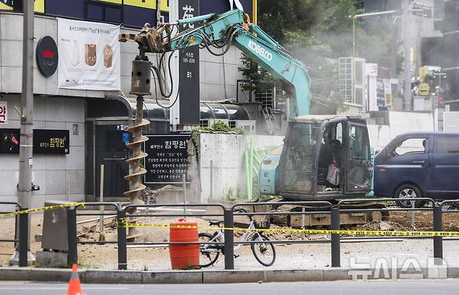 이에 따라 서울 지하철 2호선과 3호선 열차가 해당 역을 무정차로 통과하고 있으며 유관 기관이 현장 복구 작업을 진행 중이다. 사진은 도시가스 누출 일으킨 굴착기. 2025.06.27. mangusta@newsis.com