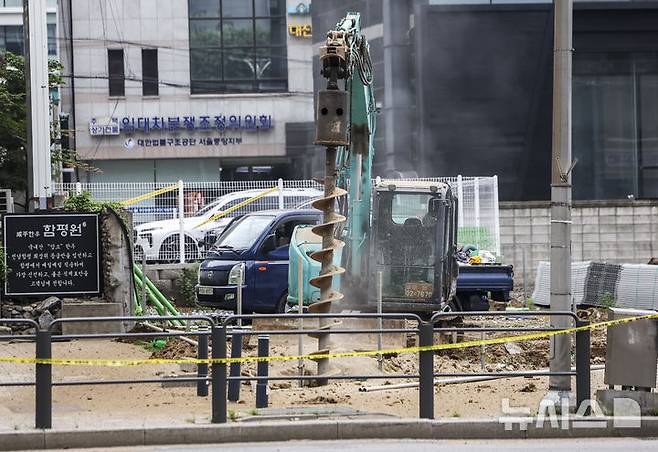 이에 따라 서울 지하철 2호선과 3호선 열차가 해당 역을 무정차로 통과하고 있으며 유관 기관이 현장 복구 작업을 진행 중이다. 사진은 도시가스 누출 일으킨 굴착기. 2025.06.27. mangusta@newsis.com