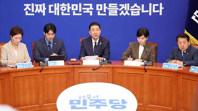 ▲ 더불어민주당 김병기 당대표 직무대행 겸 원내대표가 27일 서울 여의도 국회에서 열린 최고위원회의에서 발언하고 있다.