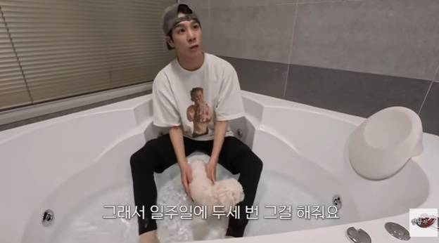 그는 "이렇게 섬세하게 목욕시키는거 처음본다"고 놀라자 "이렇게 안하면 아이들이 혼자 놔두고 정신없게 하면 베어는 벌벌떤다. 물에 들어간 경험이 없으니까. 물을 무서워해서 항상 이렇게 해줘야한다. 테디는 힘들다. 전문가의 손길이 필요해서 맡겨야한다. 테디는 말리는거까지 2시간 30분에서 3시간 걸린다. 다 하려면"이라고 고충을 토로했다.