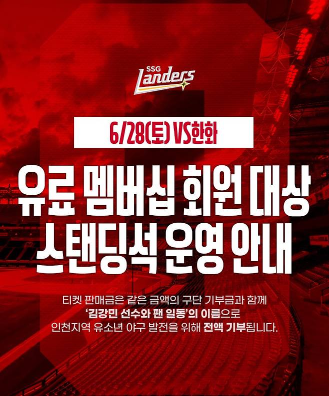SSG 구단은 또 김강민 은퇴식때 티켓을 구하지 못한 유료 멤버십 회원들을 대상으로, 선착순 500명의 스탠딩석 판매를 예고했다. 지정 좌석이 없는, 말 그대로 특정 구역에서 서서 관람을 해야하지만 티켓 가격이 5000원으로 저렴한 편이고 해당 수익은 구단으로 들어가는게 아니라, '김강민과 팬 일동'의 이름으로 인천지역 유소년 야구 발전을 위해 전액 기부된다.