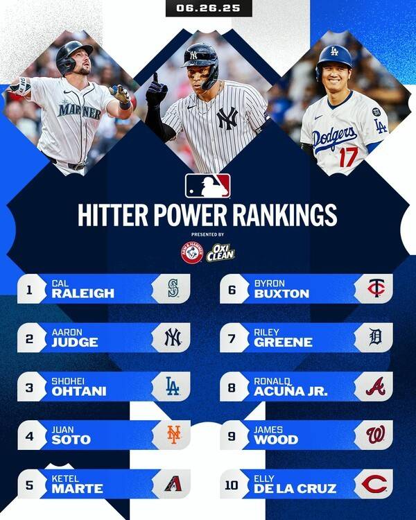 27일(한국시간) MLB 공식 홈페이지 MLB.com은 타자 부문 파워랭킹을 발표했다.