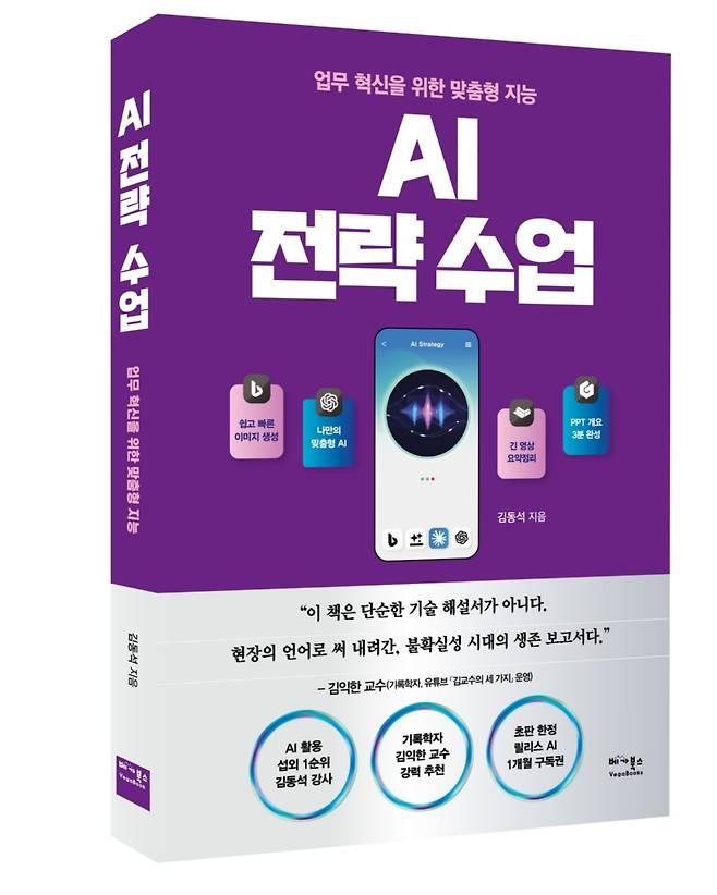 『AI 전략 수업』은 최근 공공기관과 기업에서 AI 교육 수요가 급증하는 가운데, 실무 중심의 AI 활용서에 대한 현장의 니즈를 반영해 출간된 책이다. 생성형 AI를 단순한 트렌드가 아닌, 업무에 즉시 적용 가능한 ‘도구’로 설명하며, 회의록 요약, 기획서 작성, 동영상 제작 등 다양한 실전 예제를 담고 있다.