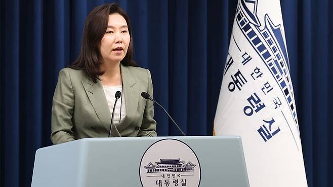 ▲ 강유정 대변인이 27일 용산 대통령실에서 현안 관련 브리핑을 하고 있다.