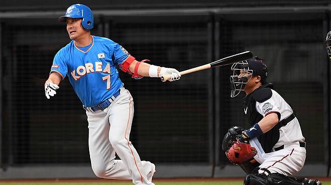 ▲ 지난해 7월 22일 일본 홋카이도 에스콘필드에서 열린 한일 드림 플레이어즈 게임 1회초. 이종범이 안타를 치고 있다.