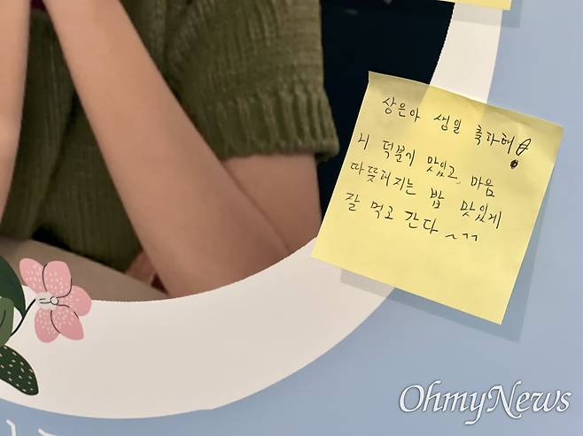 "상은이의 또래 친구들이 많이 왔으면 좋겠다"는 이상은씨의 아빠 이성환씨의 바람처럼 이날 20대 청년들도 여럿이서 식당을 찾았다. 이상은씨의 이모부는 "생일 잔치를 준비하면서 플래카드도 만들고 온라인으로 편지를 받기도 한다. (유가족에게는) 상은이를 매개로 한 해를 돌아보면서 어떤 변화가 있었는지 이야기를 하는 의미도 있다"라고 말했다.
