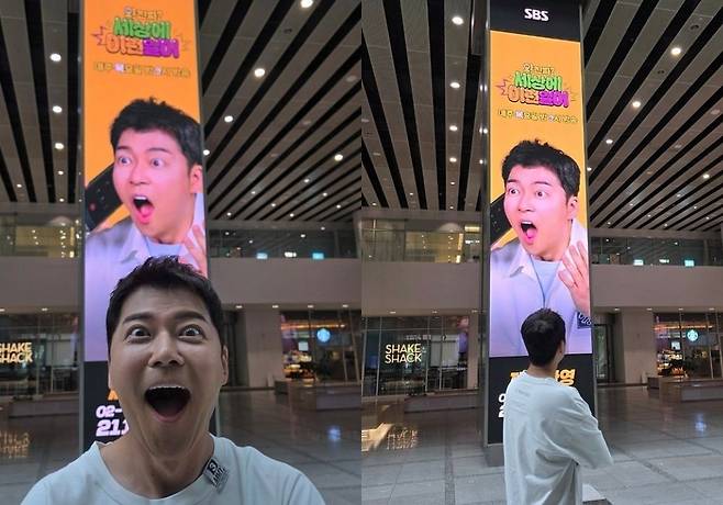 사진에는 SBS 로비 전광판 앞에서 환한 미소를 짓고 있는 전현무의 모습이 포착됐다. 전광판에는 ‘와 진짜 세상에 이런 일이’ 프로그램을 홍보하는 로고와 함께 전현무의 얼굴이 담겨 있다.