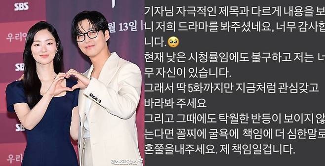 (엑스포츠뉴스 이예진 기자) 배우 남궁민이 시청률 꼴찌라는 혹평에 "딱 5회까지만 보고 혼쭐 내달라"라며 자신감을 내비친 가운데, 오늘(27일) 대망의 5회가 방송된다. 과연 시청자들의 눈길을 끌 수 있을지 관심이 더해진다.