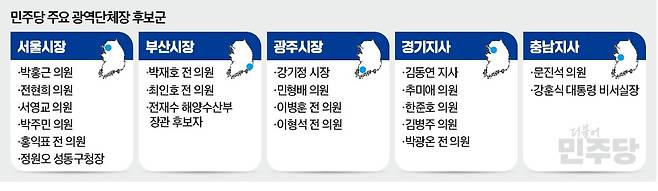 박주민 의원은 오세훈 서울시장 저격수를 자처하고 있다. 전현희 의원은 민주당 현역 중 유일하게 강남과 강북에서 모두 의원을 지냈다는 것을 강점으로 내세우고 있다. 원내대표를 지낸 홍익표 전 의원과 정원오 성동구청장도 이름이 오르내린다.
