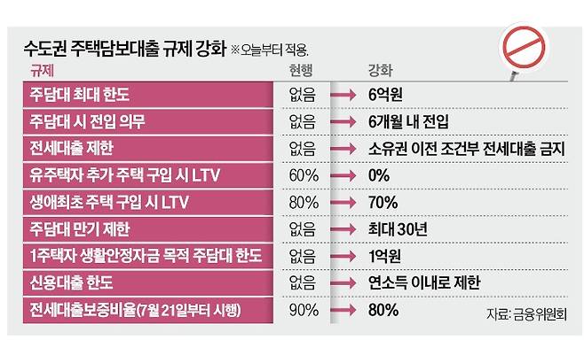 이번 조치는 28일부터 즉각 적용된다. 규제 시행 전 수요 쏠림 현상 등을 방지하기 위해서다. 권대영 금융위 사무처장은 “과도한 빚을 레버리지로 활용한 부동산 투기 수요를 철저하게 차단하겠다”며 “감당하기 어려운 대출을 받아 조급하게 주택을 구입하지 않고, 시중 자금이 생산적 분야에서 적극 활용될 수 있도록 관리하겠다”고 말했다.