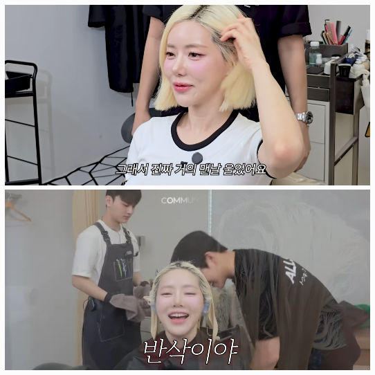 그는 "금발을 10년 해왔지만 이렇게까지 끊긴 건 처음이다. 3번 탈색만에 레몬색이 나와 이상했는데, 시술 시간이 길었던 탓 같다"고 고백했다.