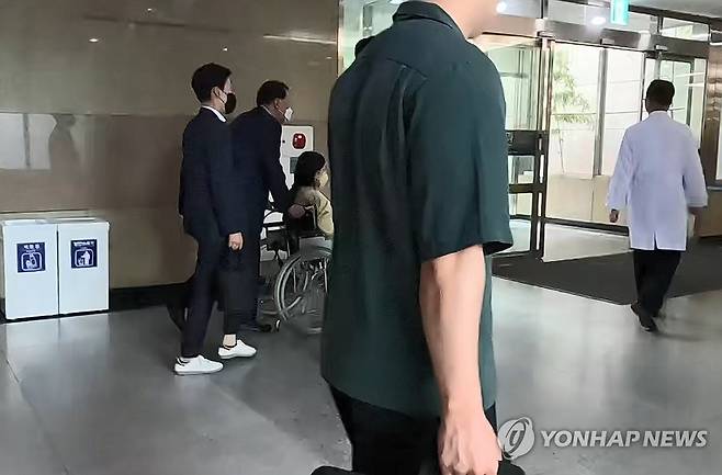 (서울=연합뉴스) 특별검사팀 출범을 앞두고 우울증 등 지병을 이유로 입원했던 김건희 여사가 27일 서울 송파구 서울아산병원에서 윤석열 전 대통령이 미는 휠체어에 탄 채 퇴원하고 있다. 2025.6.27 [SBS·MBC·KBS·YTN·MBN 방송 풀 제공. 재판매 및 DB 금지]