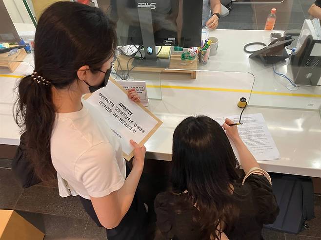 | ▲ 서울시청에 민원을 제출하고 있는 기자회견 참여자들 |