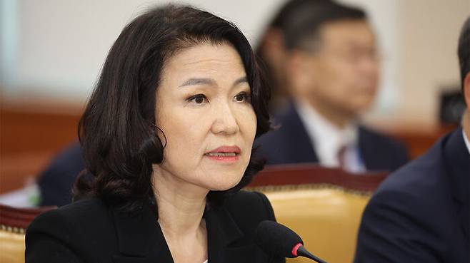 ▲ 이진숙 방송통신위원장이 27일 국회 과학기술정보방송통신위원회 전체회의에서 의원질의에 답하고 있다.