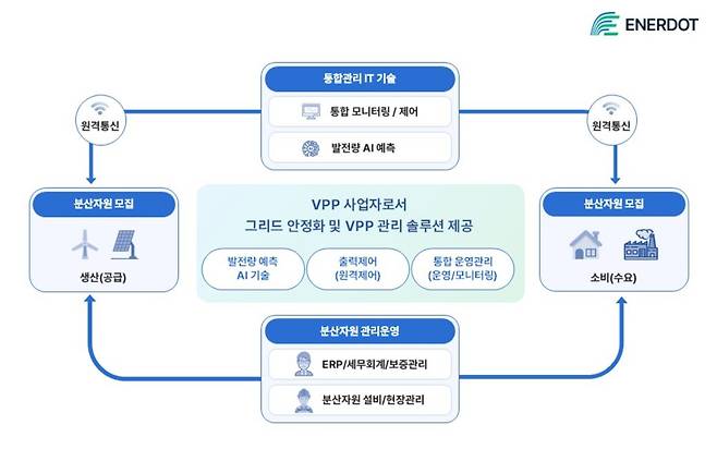 에너닷은 앞으로 다가올 VPP 시대에 발맞춰 공간·기술적으로 분산된 자원을 하나의 가상 발전소로 통합 운영할 수 있는 '스마트 통합 운영 관리 시스템'을 구축하고, 그리드 안정화 및 분산 자원 관리에 용이한 솔루션을 고도화해 제공할 계획이다.