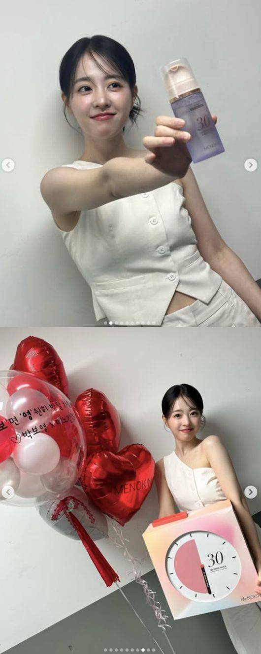 27일 박보영은 자신의 계정에 화장품 브랜드 화보 촬영에 임하고 있는 모습이 담겼다.