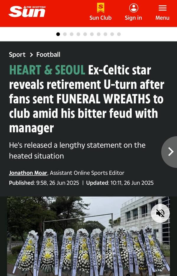 이에 지구 반 바퀴 떨어진 영국에서도 이번 이적을 주목했다. 영국 매체 ‘더 선’은 26일 “전 셀틱 스타가 자신의 고국에서 엄청난 논란의 중심에 섰다. 이 일로 인해 일부 팬들은 항의의 의미로 클럽 훈련장에 근조화환까지 보내는 극단적인 시위를 벌였다”라고 보도했다.