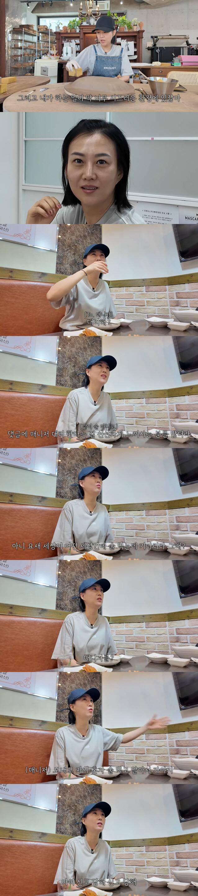 가수 장윤정이 매니저와 함께 있는 자리에서 술 마시는 것에 대한 자신의 생각을 전했다.