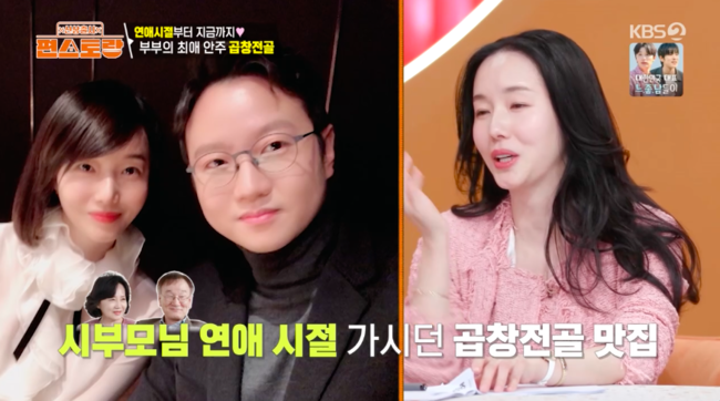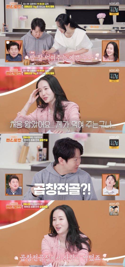 그러자 남편은 자주 가는 단골집 메뉴 곱창전골을 언급했다. 이에 이정현은 “단골집이 있다. 연애할 때부터 갔던 곳이다. 시어머니, 시아버님 연애할 때부터 갔던 곳인데 저희도 거기서 사랑이 싹 텄다”라고 밝혔다.