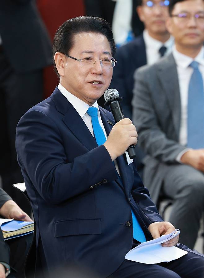 | ▲ 이재명 대통령이 20일 울산전시컨벤션센터에서 열린 인공지능(AI) 글로벌 협력 기업 간담회에서 김두겸 울산광역시장의 발언을 듣고 있다. 2025.6.20 [대통령실통신사진기자단] |