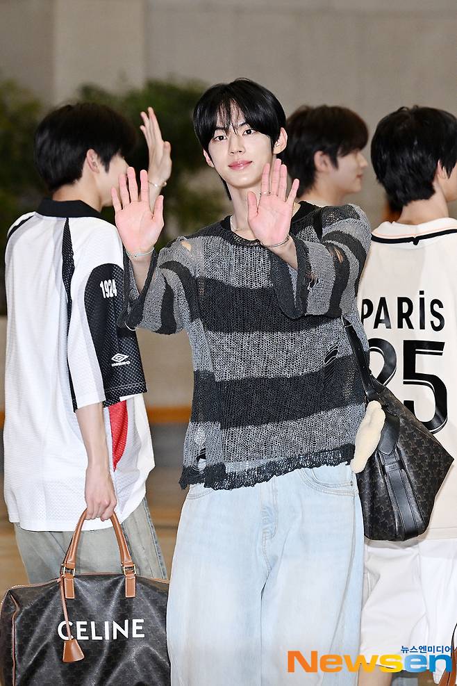 TWS(투어스) 멤버 신유, 도훈, 영재, 한진, 지훈, 경민이 6월 27일 오후 서울 강서구 방화동 김포국제공항 국제선을 통해 해외 일정 참석 차 일본으로 출국하고 있다.