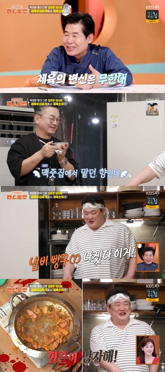 이연복은 "진짜 제육볶음 하나로 어디까지 해 먹냐"라며 김준현의 요리 내공에 놀라움을 표현했다.