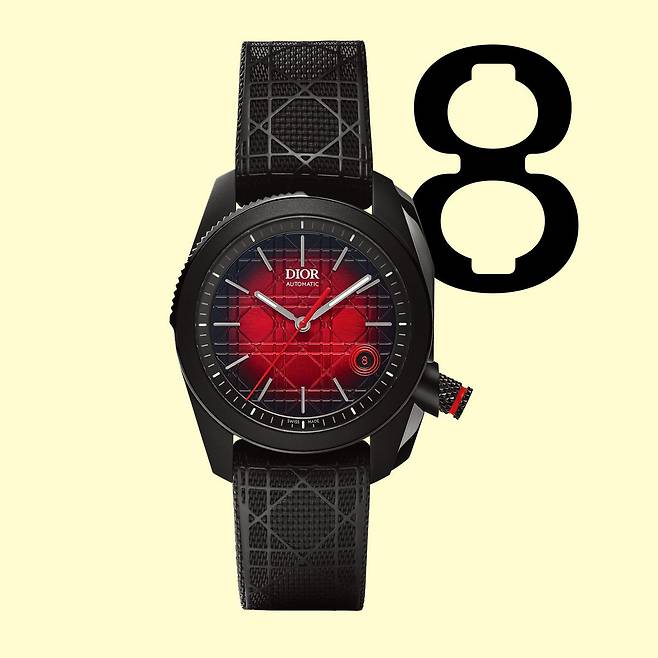 무슈 디올이 사랑한 숫자, 8에서 모티브를 얻은 타임피스. 하우스의 상징적인 카나주 패턴 다이얼에 그가 ‘생명의 색’이라 여긴 강렬한 레드 컬러가 더해졌다. 모던한 디자인의 케이스와 다이아몬드 및 로즈 골드 포인트가 돋보이는 38mm 케이스, 그리고 0.1초 단위까지 측정이 가능한 탁월한 무브먼트를 장착한 크로노그래프 버전까지 3가지 버전으로 구성했다. 다이얼의 매혹적인 레드 컬러에서 이어지는 다이얼의 그라데이션에는 선버스트 마감을 더해 매끈한 광택을 자랑한다.