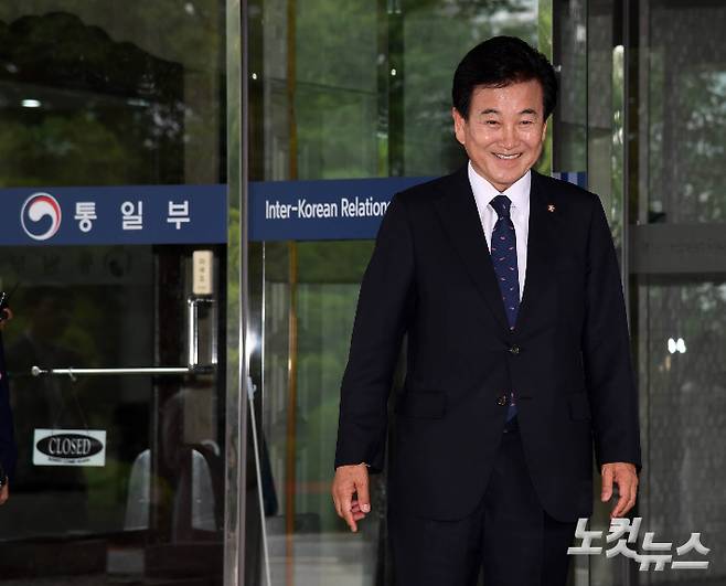 정동영 통일부 장관 후보자가 24일 오후 서울 종로구 남북관계관리단에 마련된 인사청문회 준비 사무실로 출근하며 미소짓고 있다. 20년 만에 다시 통일부 수장에 내정된 정 후보자는 "평화와 안정을 구축한 토대 위에서 통일도 모색할 수 있기 때문에 통일부 명칭 변경도 적극적으로 검토할 필요가 있다"라고 밝혔다. 황진환 기자