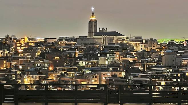 해방촌을 아끼는 이들은 이미 어느 정도 진행된 젠트리피케이션(gentrification·임대료 상승으로 원주민이 내몰리는 현상)이 더 가속될까 염려한다. 그러면서도 이 동네는 차가 못 다니는 좁은 급경사 골목길이 많아 기업형 자본이나 유명 브랜드가 들어오기 어려울 거라는 농담성 위로도 주고받는다. 다양한 스토리와 콘텐츠로 채워진 이런 전망 좋은 마을이 오래 보존되길 바란다. 사진은 소월로에서 바라본 해방촌.