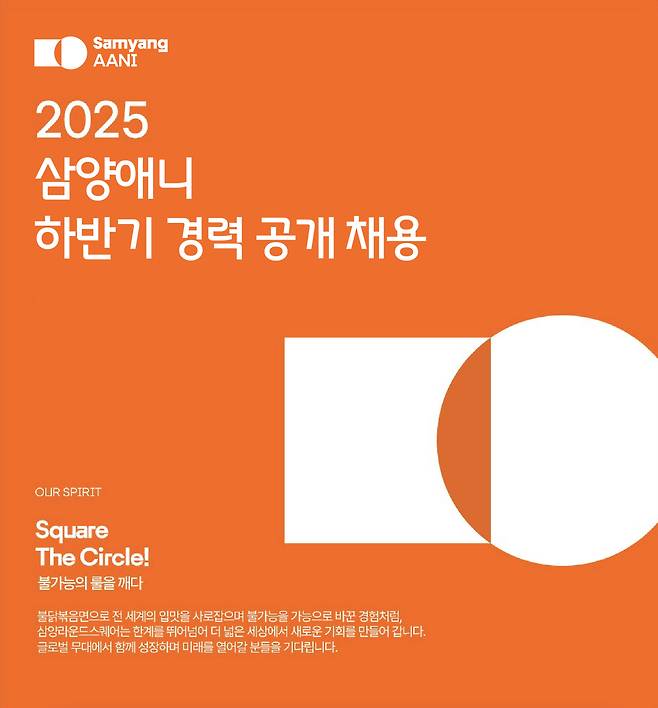 삼양라운드스퀘어 그룹의 콘텐츠 커머스를 담당하고 있는 계열사 삼양애니(Samyang AANI)는 2025년 하반기 경력 대규모 채용에 나선다고 26일 밝혔다.