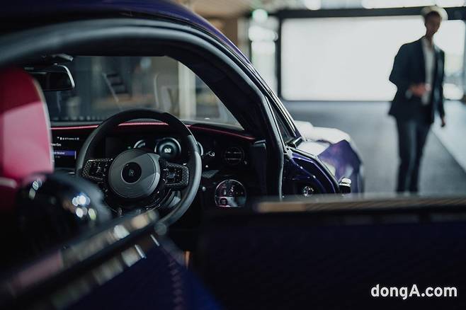 전면부 판테온 그릴은 내부에서 빛이 새어 나오는 백라이트 기능을 더해 화려해졌다. 마치 밤을 밝히는 신전 같은 웅장함이 고스란히 느껴졌다. 그릴 배경 색은 취향에 따라 총 네 가지(테일러드 퍼플·포지 옐로우·샤르트뢰즈·찰스) 중 선택할 수 있다고 한다. 블랙 배지 스펙터는 겉모습만으로도 강렬하지만, 진짜 이야기는 그 안에서 시작된다.
