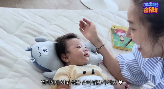 27일 유튜브 채널 '담비손 DambiXon'에서는 손담비, 이규혁 부부가 딸 해이 양의 옹알이 영상을 공개했다.