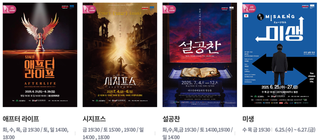 「시지프스」는 7월 4일(금) 오후 7시 30분, 5일(토) 오후 3시, 오후 7시, 6일(일) 오후 2시, 오후 6시에 공연이 예정되어 있다. 「설공찬」은 7월 4일부터 12일까지 공연이 예정되어 있다. 공연 기간중 화수목금요일은 오후 7시 30분, 토요일은 오후 2시와 7시, 일요일은 오후 2시에 각각 예정되어 있다.