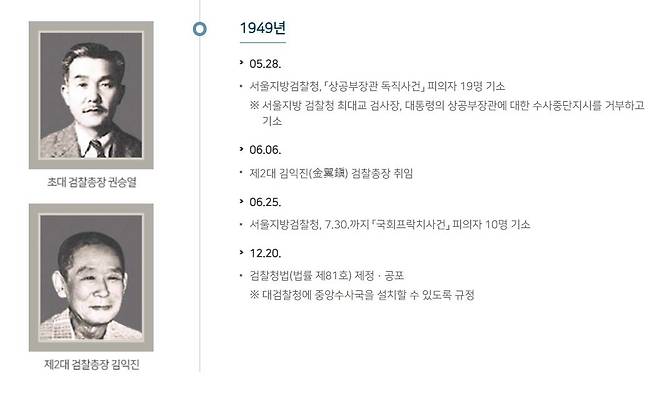 | ▲ 대검찰청 홈페이지에 소개된 김익진 제2대 검찰총장(왼쪽 하단). |