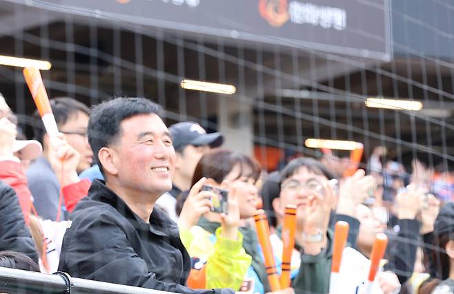 어느덧 보살씨가 응원하던 이글스 선수들은, 아저씨-형님-동생을 넘어 대부분 아들뻘이 됐다. 문동주과 김서현의 강속구가 미트를 찢을 듯 파고들고, 노시환과 문현빈의 호쾌한 스윙이 그라운드를 가르고, 어느덧 베테랑이 돼 메이저리그에서 돌아온 류현진의 역투 등을 바라보며 감회에 젖는다. 그의 입가에 '아버지 미소'가 번진다.