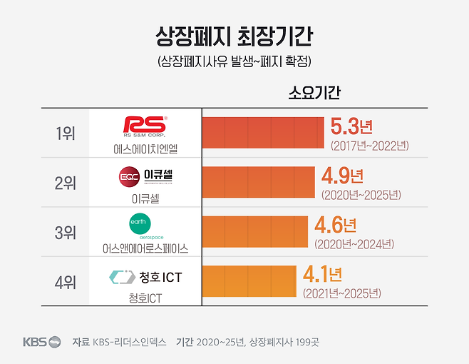 가장 길게는? 5년 4개월 걸린 기업도 있습니다. 상폐 사유가 발생한 뒤 5년 넘게 버텼던 겁니다.