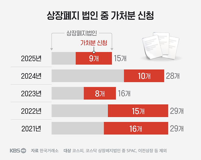 올해도 상장폐지 결정이 확정된 기업 15곳 가운데 9곳이 효력정지 가처분까지 갔습니다. (결론은 모두 패소, 상장폐지가 다 확정됐습니다.)