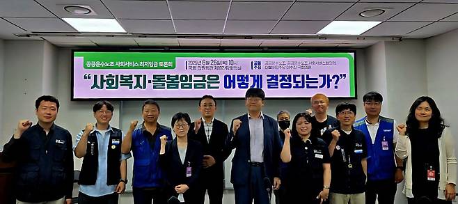"사회복지·돌봄임금은 어떻게 결정되는가?"라는 주제로 진행된 '공공운수노조 사회서비스 최저임금 토론회'에는 학자, 노조, 정부부처 관계자 등이 참석해 사회복지 현장 임금문제에 대해 의견을 교환했다.