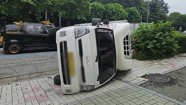 이 사고로 사고 차량 운전자 2명이 경상을 입었고, 1톤 화물차 조수석 부분이 파손됐습니다.