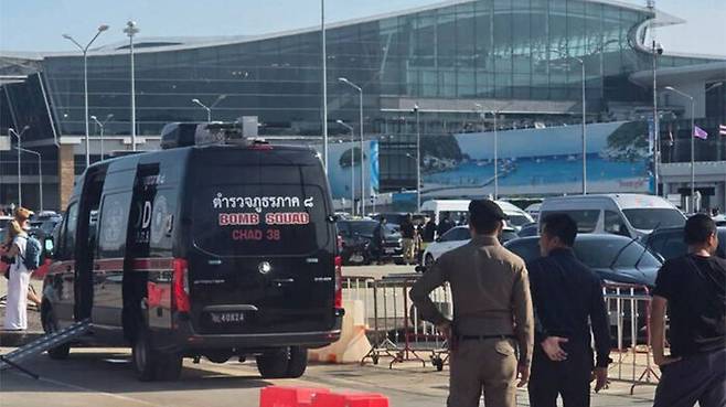 ▲ 지난 25일(현지시간) 태국 남부 푸껫 국제공항 여객터미널 근처에서 경찰이 폭발물을 채운 오토바이를 발견해 제거하는 모습.