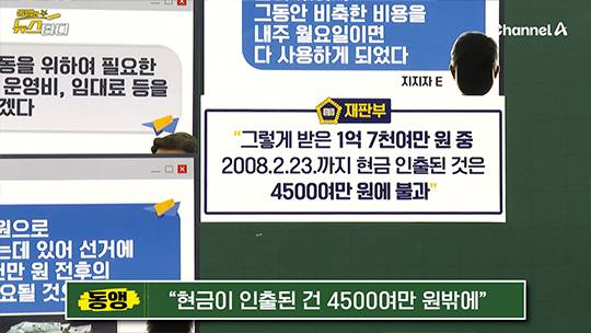 여러분은 이 이메일 내용이 어떻게 보이십니까? 재판부는 “그렇게 받은 1억 7천만 원 중 2008년 2월 23일까지 현금 인출된 것은 4500만 원에 불과하다”면서, 이때 지지자에게 받은 돈으로 강 씨에게 돈을 갚지 않았다고 봤습니다. 또 “이 금원에서 10만 원권 수표 349장이 발행됐고, 2008년 6월 김민석 선거캠프 관계자가 169장과 100장을 현금으로 교환했다”고 했습니다. 생활비가 아니라 불법 정치자금으로 썼다는 거죠.