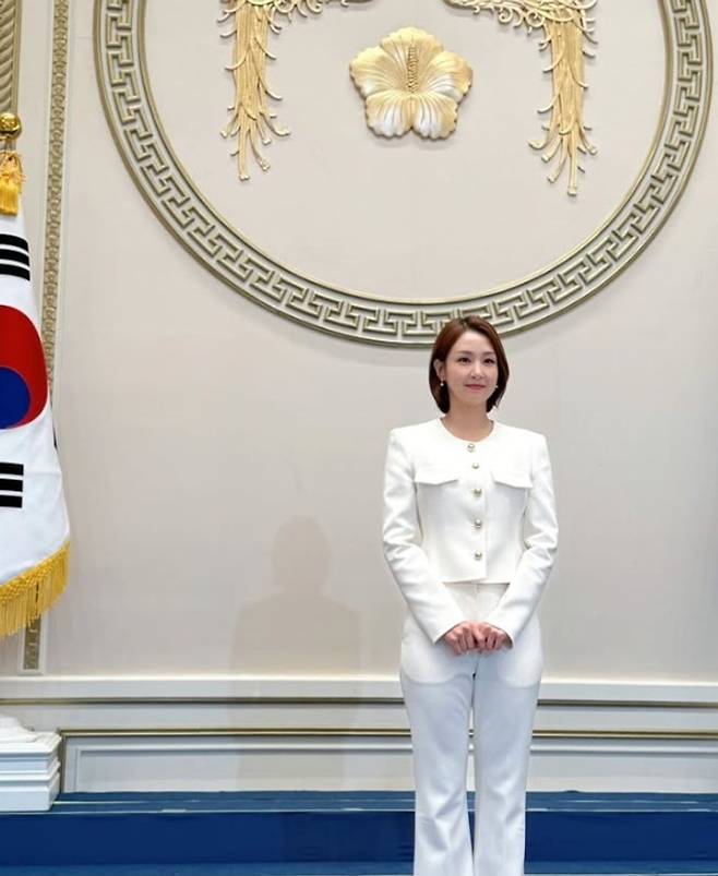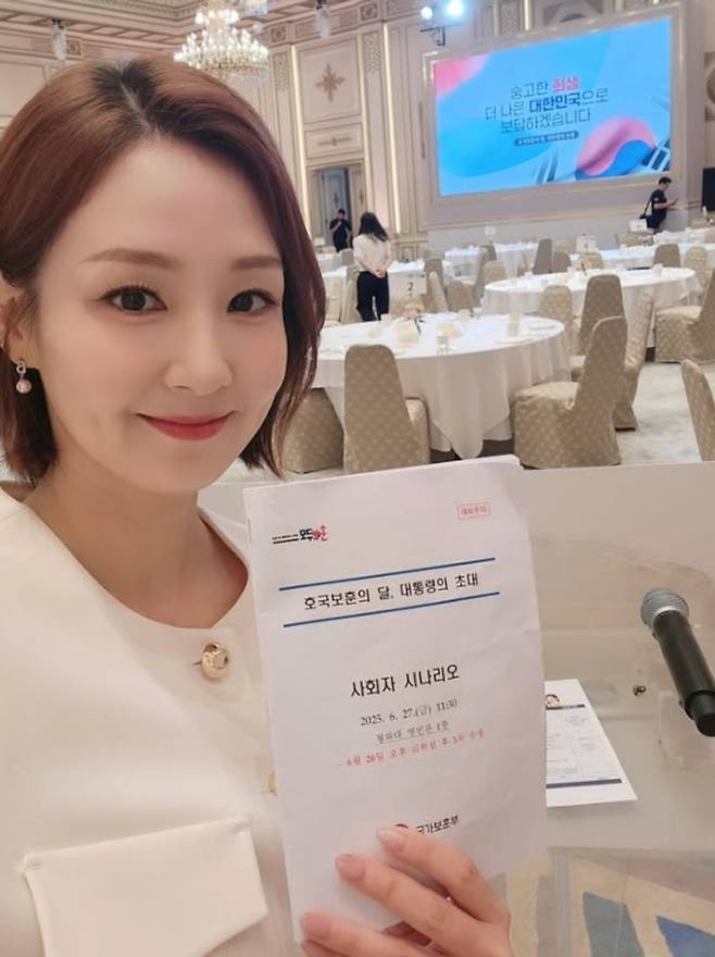 오정연은 28일 자신의 소셜 계정에 "'호국보훈의 달, 대통령의 초대' 행사의 사회를 맡았다. 새 정부 들어 청와대에서 열린 첫 행사였다"면서 사진을 게시했다.