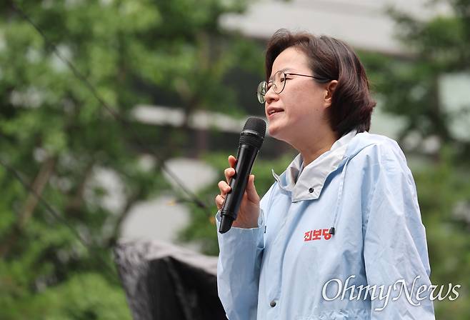 | ▲ 28일 서울 숭례문 앞에서 열린 전국학교비정규직노동자대회에서 진보당 정혜경 의원이 발언하고 있다. |