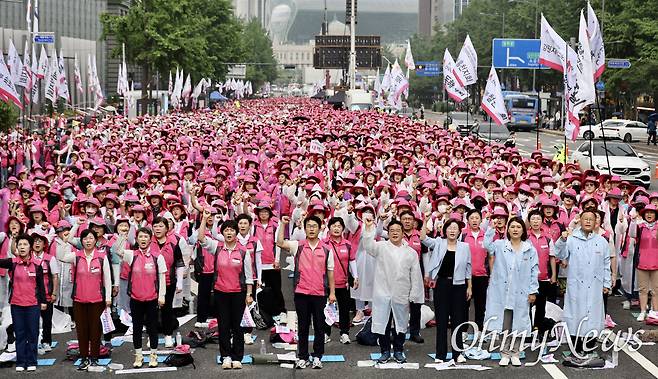 | ▲ 28일 서울 숭례문 앞에서 열린 전국학교비정규직노동자대회 |