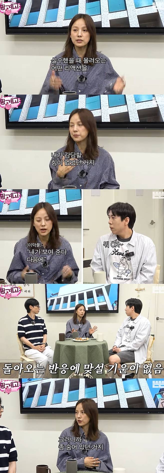 이를 들은 유재석은 "한마디로 조금 지친 것도 사실이었고"라며 이효리의 마음을 헤아렸고, 이효리는 "맞다. 그거를 실수했을 때 몰려오는 리액션을 내가 감당할 힘이 없었다"고 털어놨다.