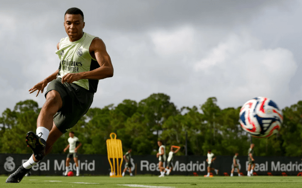 스페인 매체 '아스'는 28일(이하 한국시간) "레알 마드리드 스타 음바페가 미국 플로리다 팜비치에서 열린 금요일 훈련에서 컨디션을 한층 끌어올렸다. 밝은 표정과 여유로운 태도로 훈련에 임한 그는 이제 남은 세 차례 훈련을 통해 몸 상태를 최종 점검할 예정이다. 사비 알론소 감독도 그의 복귀를 기다리고 있다"고 보도했다.