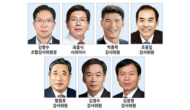 감사위원에는 박종학 전 충북 음성 맹동농협 조합장, 조용일 경북 의성 금성농협 조합장, 함원호 강원 평창 대관령농협 조합장, 김경수 전 대구고등검찰청 검사장, 김광영 전 감사원 공공감사운영단장이 선출됐다.