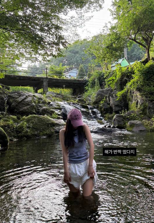 28일 이솔이는 자신의 소셜 계정에 여러 장의 사진을 공개했다. 이솔이는 "해가 번쩍 떴다지", "오늘 너무 많이 먹었다"라며 글귀를 적었다. 그는 한 계곡에 방문한 듯, 편안한 오버핏 티셔츠에 짧은 바지를 입어 늘씬한 자태로 계곡물에 서스럼없이 몸을 담갔다.