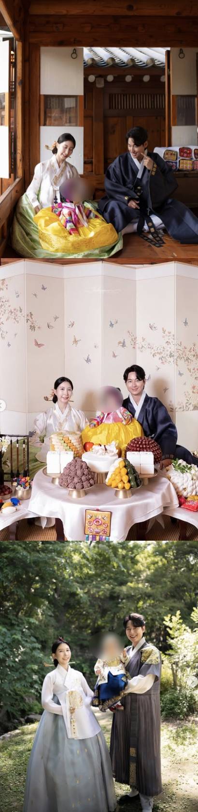 이와 함께 공개한 사진 속 이지훈, 아야네 가족은 아름다운 색감의 한복을 차려 입고 고풍스러운 한옥을 배경으로 돌 기념 사진을 촬영 중인 모습이다.