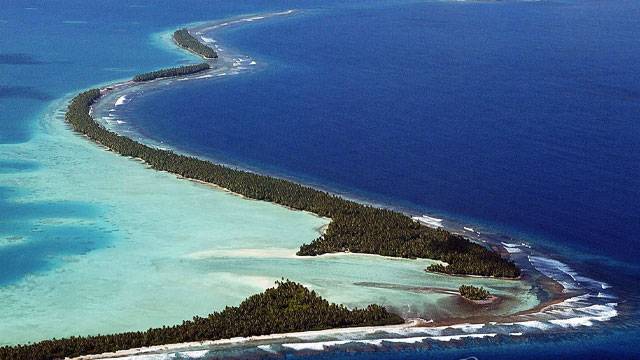 솔로몬 제도 동쪽과 피지 북쪽에 있는 투발루는 작은 섬 9개로 구성돼 있는데 기후 변화에 따른 해수면 상승으로 점차 물에 잠기면서 9개 섬 가운데 2개는 이미 거의 사라졌습니다.